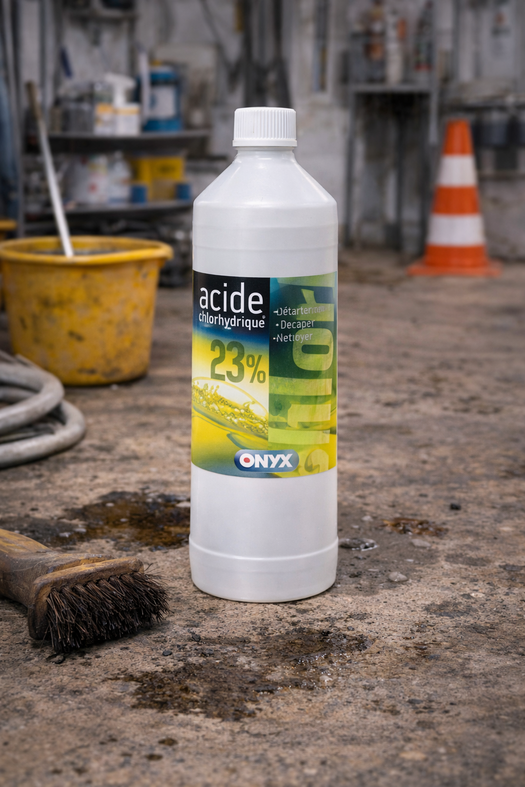 Par ailleurs, l’acide chlorhydrique peut s’utiliser pur ou dilué selon le niveau d’encrassement. Toutefois, son emploi nécessite des précautions strictes, car il s’agit d’un produit corrosif. En respectant les consignes de sécurité et les dosages recommandés, il offre une solution rapide et performante pour les nettoyages les plus exigeants.