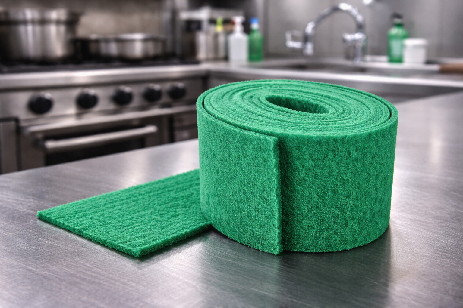 Le tampon abrasif vert en rouleau est conçu pour les travaux de nettoyage intensif et de récurage en environnement professionnel. Il permet d’éliminer efficacement les salissures incrustées, traces grasses et dépôts tenaces sur de nombreuses surfaces.
