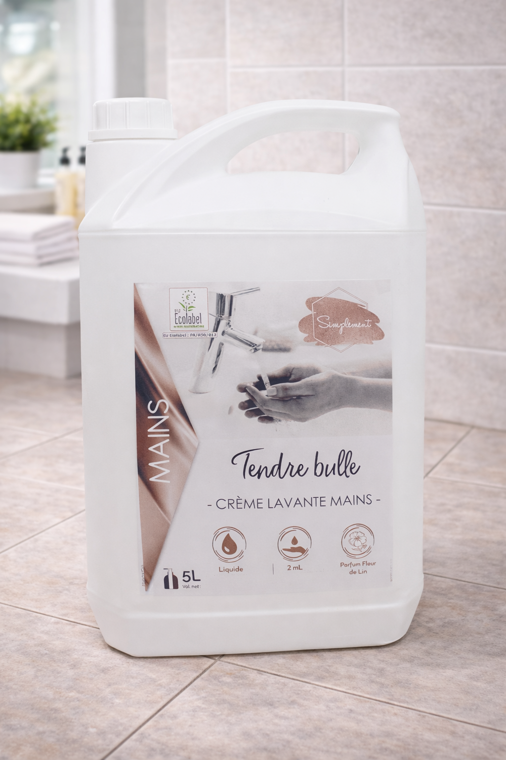 Tendre Bulle est une crème lavante mains parfumée à la fleur de lin, certifiée Ecolabel. Elle nettoie efficacement et hydrate grâce à sa formule d’ingrédients d’origine végétale. Son parfum frais rend le lavage des mains agréable. Avec un pH équilibré de 5.5, elle convient à tous les types de peau, idéale pour un usage quotidien dans tous les milieux, notamment alimentaire.